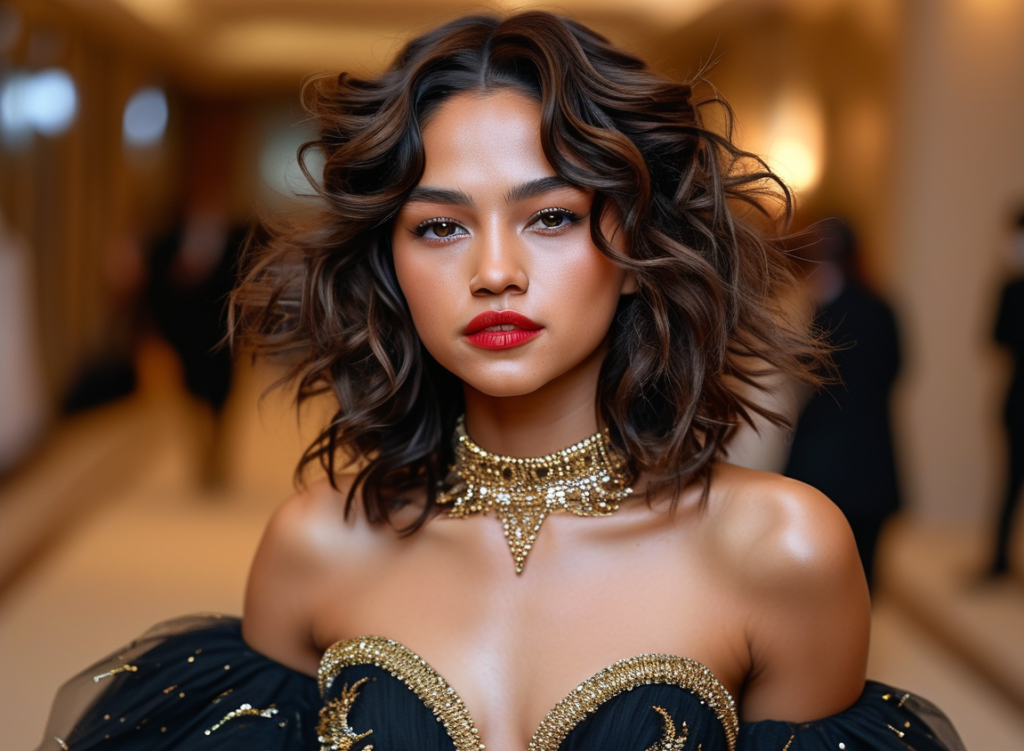 Zendaya continues to reign supreme on the red carpet, and her Met Gala 2024 look was nothing short of extraordinary. The actress wore a holographic gown that shifted colors with every movement, mimicking the iridescent scales of a mythical creature. The dress, embedded with micro-LED lights, told the story of a futuristic mermaid through animated sequences. Paired with a crown of floating crystals held in place by invisible magnetic fields, Zendaya’s outfit perfectly embodied the “Futuristic Folklore” theme.