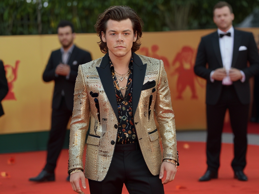 Styles’ attempt at futuristic folk wear missed the mark with a confusing mix of neon colors and traditional patterns. His outfit, which included a kilt made of LED fabric displaying pixelated tartans, clashed with a jacket covered in holographic feathers. The overall effect was more distracting than cohesive, failing to effectively blend the futuristic and folklore elements.